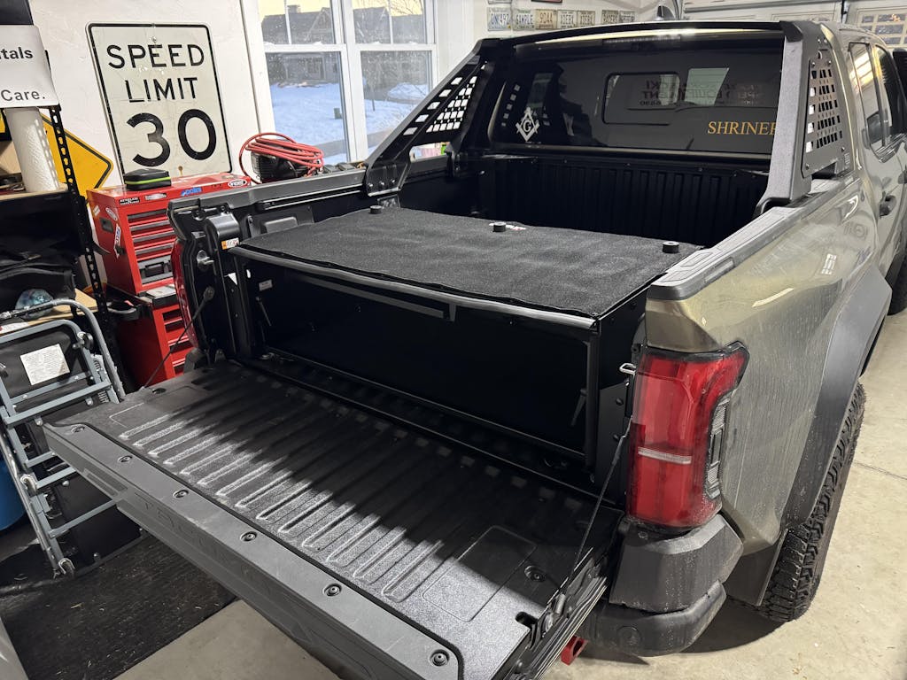 I have a 2024 Tacoma Trailhunter and secure storage is a challenge. The ARB rack doesn’t work with a tonneau cover and the hybrid gets rid of the under seat storage. I saw a Facebook ad for the ez trunk / bed extender and it appeared to be exactly what I was looking for. I called the company to ask a couple questions and the customer service was great. The quality of the product is fantastic.. Assembly took me about an hour and installation took about the same. The online assembly instruction videos were very helpful. I am thrilled with my purchase. I highly recommend this for 4th Gen Tacoma owners needing secure storage or to make their bed 2’ longer.