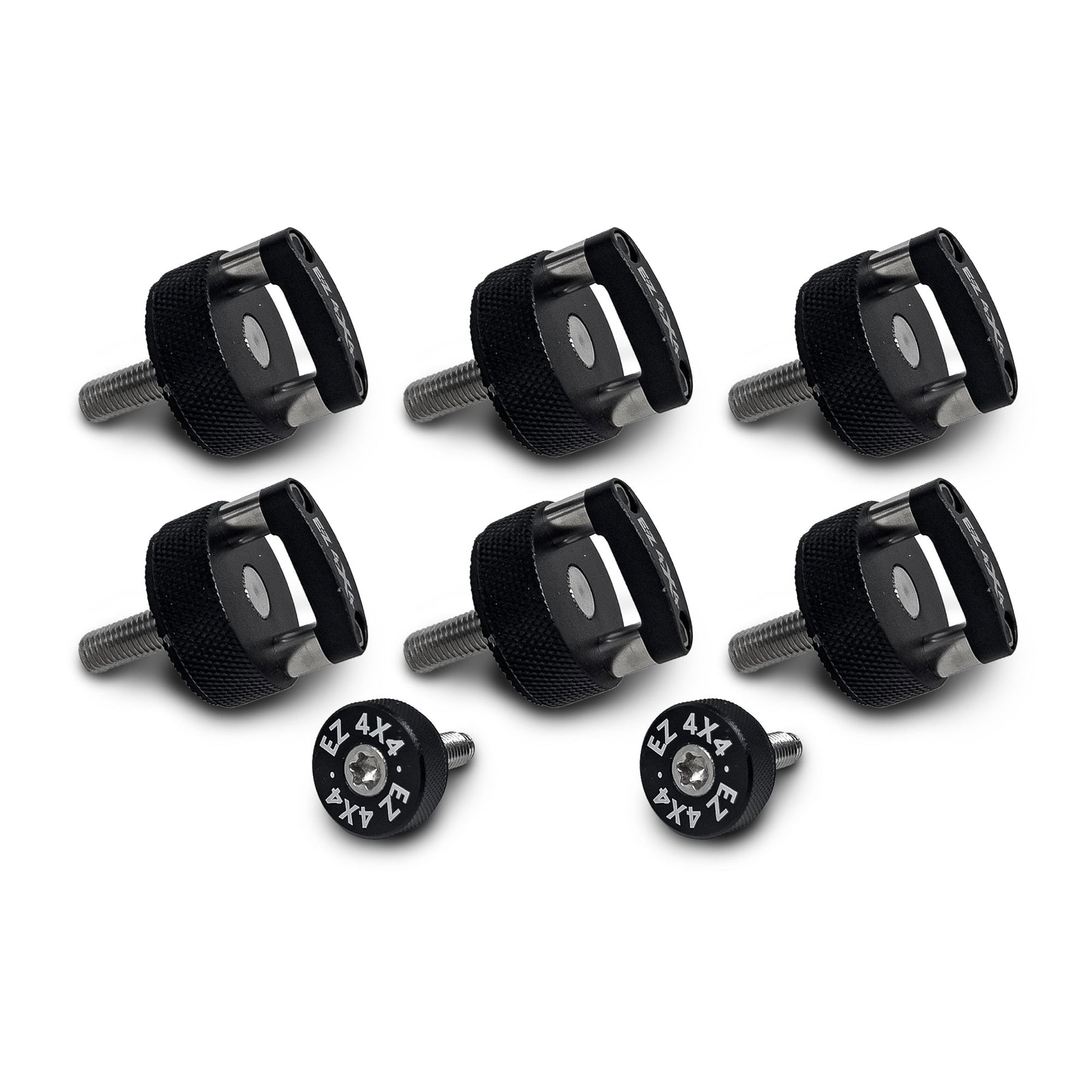 - Two medium thumb screws replace factory B-pillar bolts for tool-free front roof panel security.