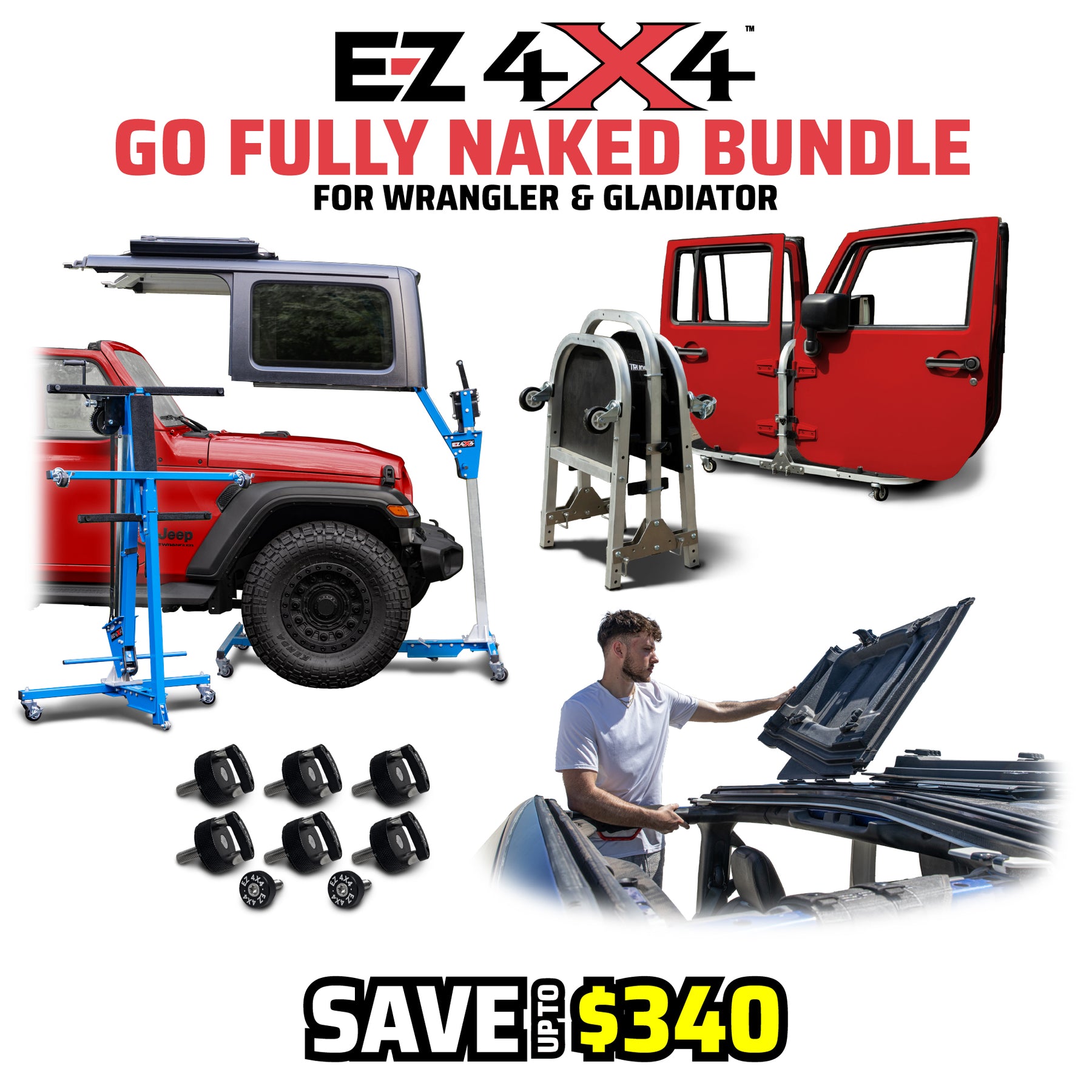 Achieve instant, hassle-free open-air freedom! This all-in-one bundle includes the Hard Top Lift, EZ FlipTop system, Quick Release Thumb Screws, and Door Cart. Get the entire system for quick, one-person top and door removal, and maximize your savings.
